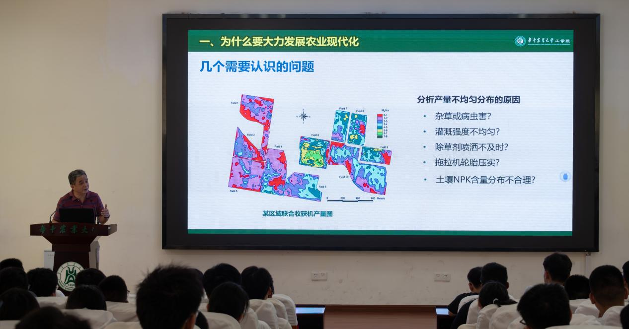 “我们能为现代化农业做什么?”——带着这一深刻而富有启发性的问题,农业工程系的牛智有教授为新生们开启了一场别开生面的主题交流。在当前城镇化浪潮席卷、农村劳动力资源日益紧张、老龄化问题凸显以及土地流转与农业规模化经营趋势加速的背景下,这一议题不仅触及了现代农业发展的核心挑战,也激发了同学们对未来农业蓝图的无限遐想。